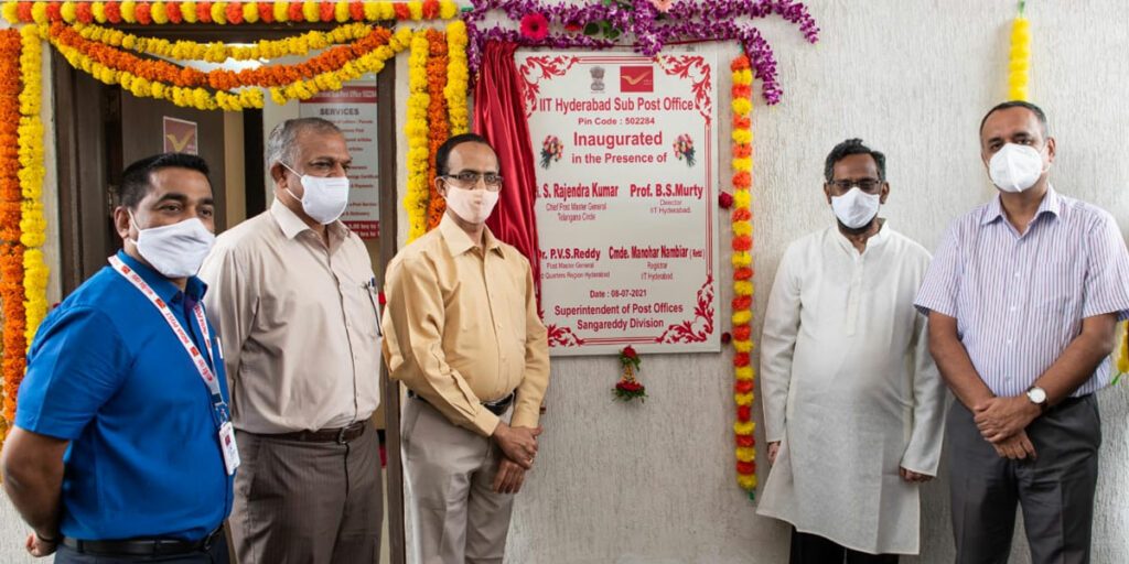 కంది/సంగారెడ్డి : ఐఐటీ హైదరాబాద్లో నూతనంగా సబ్ పోస్ట్ ఆఫీస్ను గురువారం ప్రారంభించారు. ఈ కార్యక్రమంలో ఐఐటీ హైదరాబాద్ డైరెక్టర్ వీఎస్ మూర్తితో పాటు చీఫ్ పోస్ట్ మాస్టర్ జనరల్ రాజేంద్ర కుమార్ పాల్గొని ప్రారంభించారు. ఈ సందర్భంగా వారు మాట్లాడుతూ.. ఇక పై ఐఐటీ హైదరాబాద్ క్యాంపస్ లోని అన్ని రకాల పోస్టల్ సర్వీస్ కార్యకలాపాలు కొనసాగిస్తామని తెలిపారు. ఐఐటీ హైదరాబాద్ కు కొత్త పిన్ కోడ్ కూడా ఈ సందర్భంగా అందజేశామని తెలిపారు. ఐఐటీ క్యాంపస్లో ఇప్పటికే అన్ని రకాల సర్వీసులను విద్యార్థులకు ఇతర సిబ్బందికి అందుబాటులో ఉంచామన్నారు.