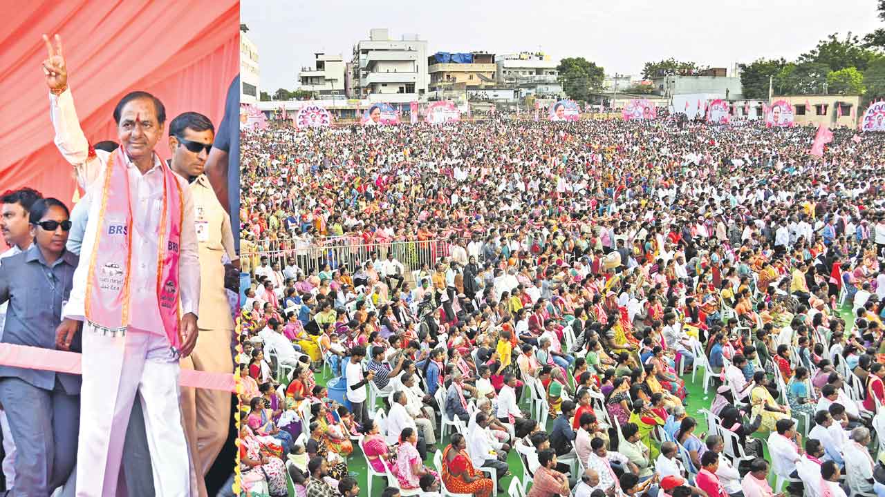 తెలంగాణ రాష్ట్రం ఏర్పడినప్పుడు మంచినీళ్లు, సాగునీళ్ల్లు, కరెంటు లేదని, రైతుల ఆత్మహత్యలు, ఆకలిచావులు, చేనేత కార్మికుల ఆత్మహత్యలు, పరిశ్రమలు మూతపడుడు, ప్రజలు వలసపోవాల్సిన దుస్థితి ఉండేదని సీఎం కేసీఆర్ గుర్తుచేశారు. పదేండ్లలో బీఆర్ఎస్ ప్రభు త్వం ఒక్కో రంగాన్ని బాగు చేసుకుంటూ ముం దుకు పోతున్నదని తెలిపారు. మంచినీళ్ల బాధ తీర్చామని చెప్పారు. దేశవ్యాప్తంగా గోండు గూ డేలు, తండాలు, మారుమూల పల్లెల్లో కూడా ప్రతి ఇంట్లో నల్లా పెట్టి శుద్ధమైన నీళ్లను అందిస్తున్న ఏకైక రాష్ట్రం తెలంగాణ అని పేర్కొన్నారు. కరెంటును బాగుచేసుకున్నామని, వ్యవసాయం, పరిశ్రమలు, ఇండ్లకు ఇలా అన్ని రం గాలకు 24 గంటల కరెంటు ఇచ్చే ఏకైక రాష్ట్రం కూడా తెలంగాణే అని ఉద్ఘాటించారు. పిం ఛన్లు, కల్యాణలక్ష్మి, షాదీముబారక్ వంటి పథకాలను పెట్టామని వివరించారు. ఆరోగ్యరంగంలో ఎంతో ప్రగతి సాధించామని, కేసీఆర్ కిట్, అమ్మఒడి వాహనాలు పెట్టి ప్రోత్సహిస్తే ప్రభుత్వ వైద్యశాలల్లోనే ప్రసవాలు జరుగుతున్నాయని, ప్రైవేట్ దవాఖానల దోపిడీ తగ్గిపోయిందని వెల్లడించారు. పాఠశాల విద్యారంగం లో ఎన్నో మార్పులు తీసుకొచ్చామని, ఎస్సీ, ఎస్టీ, బీసీ, మైనార్టీ వర్గాలకు కలిపి మొత్తంగా 1,019 గురుకులాలను ఏర్పాటు చేశామని, ఆ గురుకులాల్లో చదువుకునే విద్యార్థులు ఒక్కొక్కరి మీద ఏటా రూ.1.25 లక్షలు ఖర్చుపెట్టి నాణ్యమైన విద్య అందిస్తున్నామని తెలిపారు. రైతాంగం బాగుపడాలని, వ్యవసాయ స్థిరీకరణ జరగాలని పలు పథకాలు పెట్టామని చెప్పారు. పెట్టుబడి కోసం రైతులు ఇబ్బంది పడకూడదని రైతుబంధు అందిస్తున్నామని, దానిని పెంచుతామని భరోసా ఇచ్చారు. కాంగ్రెస్ జమానాలో బ్యాంకు అధికారులు రైతుల ఇండ్ల తలుపులు ఎత్తుకెళ్తే. బీఆర్ఎస్ హయాంలో బ్యాంకుల వారే రైతుబంధు, రైతుబీమా డబ్బులు ఇంటికి తీసుకొచ్చి ఇస్తున్నారని పేర్కొన్నారు. ‘నేడు తెలంగాణ తలసరి ఆదాయంలో నంబర్ వన్గా ఉన్నది. ఇదంతా మంత్రం చేస్తే కాలేదు. పట్టుదల, దీక్షతో, ప్రణాళికా బద్ధంగా ముందుకెళ్తే జరిగింది. కేసీఆర్ జగమొండి.. అనుకుంటే ఏదైనా చేస్తాడు. కాబట్టే అనుకున్నవన్నీ సకాలంలో పూర్తిచేశా’ అని తెలిపారు.
