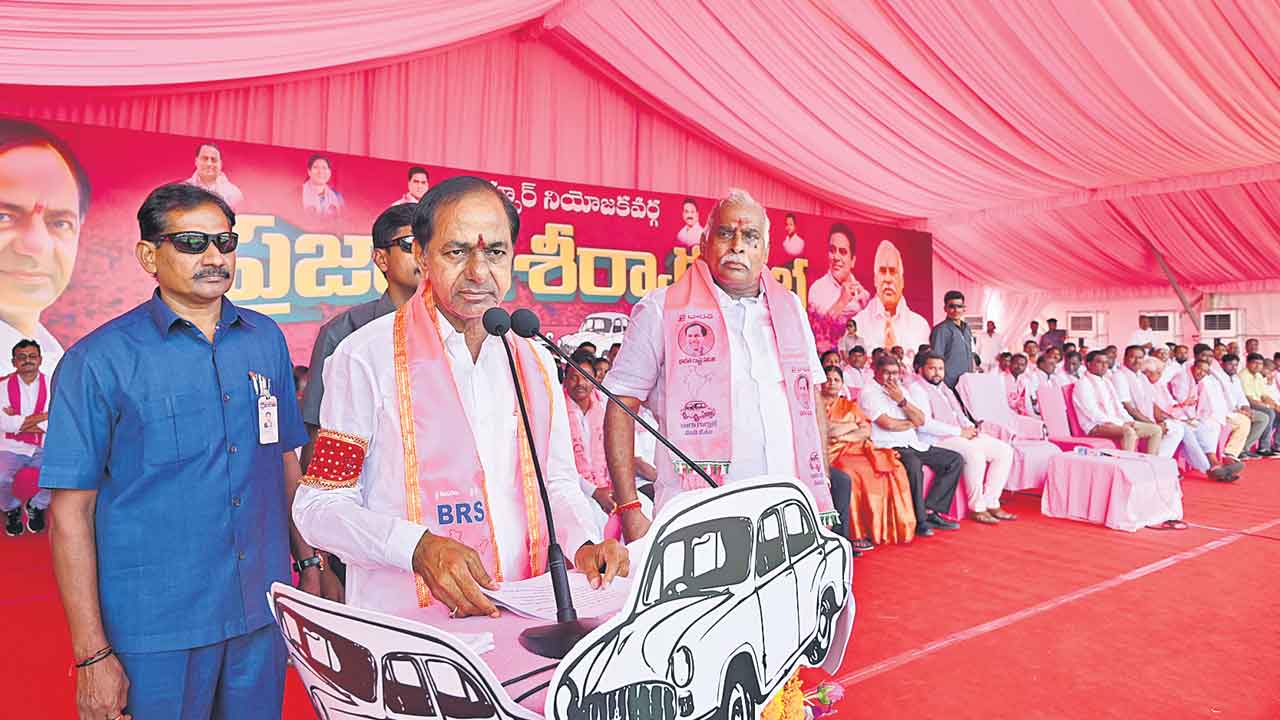 హైదరాబాద్, నవంబర్ 8 (నమస్తే తెలంగాణ): ‘ఇయ్యాల ఎమ్మెల్యే టికెట్లు అమ్ముకున్నోళ్లకు రాష్ర్టాన్ని అప్పగిస్తే.. రాష్ర్టాన్ని కూడా అమ్మరా? పార్టీ టికెట్లనే అమ్ముకునే నాయకులు రాష్ర్టాన్ని కాపాడుతరా? టికెట్లు అమ్ముకునే నాయకులు కావాలో.. నిత్యం ప్రజల కోసం ఆలోచించే బీఆర్ఎస్ నాయకులు కావా లో ప్రజలే ఆలోచించుకోవాలి’ అని ముఖ్యమంత్రి కేసీఆర్ సూచించారు. కాంగ్రెస్కు ఓటే స్తే కైలాసం ఆటలో పెద్దపాము మింగినట్టయితదని, పైరవీకారులు, దళారుల రాజ్యం, లం చాల రాజ్యం వస్తదని హెచ్చరించారు. పొదరిల్లు తెలంగాణను మళ్లీ అడ్డమైన వాళ్ల చేతిలో పెడితే ఆగమాగమవుతుందని తెలిపారు. అం దుకే బీఆర్ఎస్ను గెలిపించుకోవాలని ప్రజలకు పిలుపునిచ్చారు. సిర్పూర్ కాగజ్నగర్, కుమ్రంభీం ఆసిఫాబాద్, బెల్లంపల్లిలో బుధవారం ని ర్వహించిన బీఆర్ఎస్ ప్రజా ఆశీర్వాద సభల్లో సీఎం కేసీఆర్ ప్రసంగించారు. తెలంగాణ ప్రజల హక్కులు, ఆకాంక్షల కోసమే బీఆర్ఎస్ పుట్టిందని, పదేండ్ల పాలనలో అన్నిరంగాలను అభివృద్ధి చేశామని వివరించారు. గిరిజనులకు ఇప్పటికే పోడు పట్టాలు ఇచ్చామని, రాబోయే రోజుల్లో గిరిజనేతరులకు కూడా ఇచ్చేందుకు కృషి చేస్తామని భరోసా ఇచ్చారు.