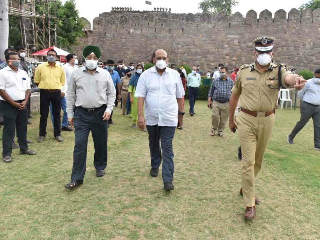 హైదరాబాద్ : స్వాతంత్య్ర దినోత్సవాన్ని పురస్కరించుకుని నగరంలోని గోల్కొండ కోటలో చేపట్టిన ఏర్పాట్లను ప్రభుత్వ ప్రధాన కార్యదర్శి సోమేశ్ కుమార్ బుధవారం పరిశీలించారు. అక్కడే పోలీసు, జీహెచ్ఎంసీ, ఆర్&బీ, ఐ&పీఆర్, సాంస్కృతిక, రెవెన్యూ శాఖల అధికారులతో వేడుక ఏర్పాట్లపై సీఎస్ సమీక్ష చేశారు. ఈ సందర్భంగా సోమేశ్ కుమార్ మాట్లాడుతూ.. అధికారులు సమన్వయంతో వ్యవహారించి స్వాతంత్య్ర వేడుకలను అత్యంత వైభవంగా నిర్వహించేందుకు ఏర్పాట్లు చేయాలని అదేశించారు. ప్రజలకు ఎలాంటి అసౌకర్యం కలగకుండా ఉండేలా భద్రత, ట్రాఫిక్ నిర్వహణకు తగిన ఏర్పాట్లు చేయాలన్నారు. ఈ నెల 15 వ తేదీ ఉదయం 10.30 గంటలకు రాష్ట్ర ముఖ్యమంత్రి కె.చంద్రశేఖర్ రావు గోల్కొండ కోటలో జాతీయ జెండాను ఆవిష్కరిస్తారని తెలిపారు