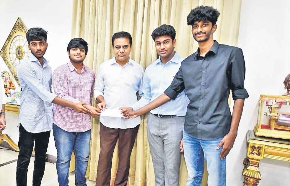 హైదరాబాద్, అక్టోబర్ 6 (నమస్తే తెలంగాణ): హైదరాబాద్లోని ఓక్రిడ్జ్ పాఠశాల విద్యార్థులు వర్షిత్ నర్రా, చరిత్రెడ్డి, సుదీశ్రెడ్డి, శరత్రెడ్డి తదితరులు వోల్వ్స్ సంస్థ నిర్వహిస్తున్న చారిటీ ఫుట్బాల్ టోర్నమెంట్ ద్వారా సీఎం సహాయ నిధికి రూ.1.5 లక్షలు సమకూర్చారు. ఈ మొత్తాన్ని బుధవారం ప్రగతిభవన్లో మంత్రి కేటీఆర్కు అందజేశారు.