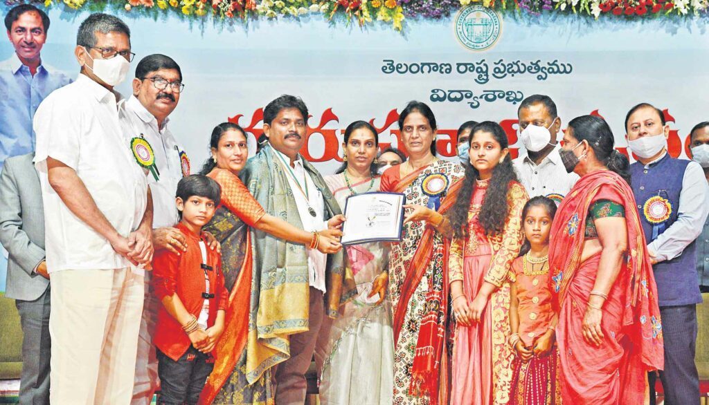 బాల్యంలో తాను పీర్ల కొట్టంలో చదువుకున్నట్లు మంత్రి సబితాఇంద్రారెడ్డి తన పాతరోజులను గుర్తుచేసుకున్నారు. ఊర్లో స్కూల్ లేకపోవడంతో పీరీలు దాచిఉంచే కొట్టమే మాకు పాఠశాలగా ఉండేదని చెప్పారు. 5 కిలోమీటర్లు సైకిల్పై వచ్చి, ఇంటింటి తిరిగి పిల్లలందరికి సమీకరించి, అక్షరాలు దిద్దించిన గురువును మంత్రి ఈ సందర్భంగా గుర్తుచేసుకున్నారు. మంత్రి తలసాని మాట్లాడుతూ నియోజకవర్గ అభివృద్ధి నిధులతో స్కూళ్ల రూపురేఖలను మార్చనున్నామని చెప్పారు. ఈ కార్యక్రమంలో ఎమ్మెల్సీలు కూర రఘోత్తంరెడ్డి, కాటేపల్లి జనార్దన్రెడ్డి, నర్సిరెడ్డి, ఉన్నత విద్యామండలి చైర్మన్ ప్రొఫెసర్ ఆర్ లింబ్రాది, వైస్ చైర్మన్ ప్రొఫెసర్ వెంకటరమణ, గ్రంథాలయ సంస్థ చైర్మన్ ఆయాచితం శ్రీధర్, విద్యాశాఖ కార్యదర్శి సందీప్కుమార్ సుల్తానియా, కళాశాల, సాంకేతిక విద్యాశాఖ కమిషనర్ నవీన్మిట్టల్, ఇంటర్బోర్డు కార్యదర్శి సయ్యద్ ఒమర్ జలీల్, పాఠశాల విద్యాశాఖ డైరెక్టర్ శ్రీదేవసేన, వైస్చాన్స్లర్లు కట్టా నర్సింహారెడ్డి, రవీందర్, కుసుంబ సీతారామారావు పాల్గొన్నారు. ఈ సందర్భంగా రాష్ట్రస్థాయిలో ఉత్తమ టీచర్లుగా నిలిచిన 111మందిని మంత్రి ఘనంగా సన్మానించారు. వీరికి రూ.10 వేల చెక్కు, ప్రశంసాపత్రం, మెడల్లను అందజేశారు. అంతకుముందు జాతీయ ఉత్తమ ఉపాధ్యాయ అవార్డులకు ఎంపికైన కాడెర్ల రంగయ్య, రామస్వామి వర్చువల్గా రాష్ట్రపతి నుంచి అవార్డులు అందుకోగా, వారికి రవీంద్రభారతిలో మంత్రుల చేతులమీదుగా అవార్డులు అందజేశారు.