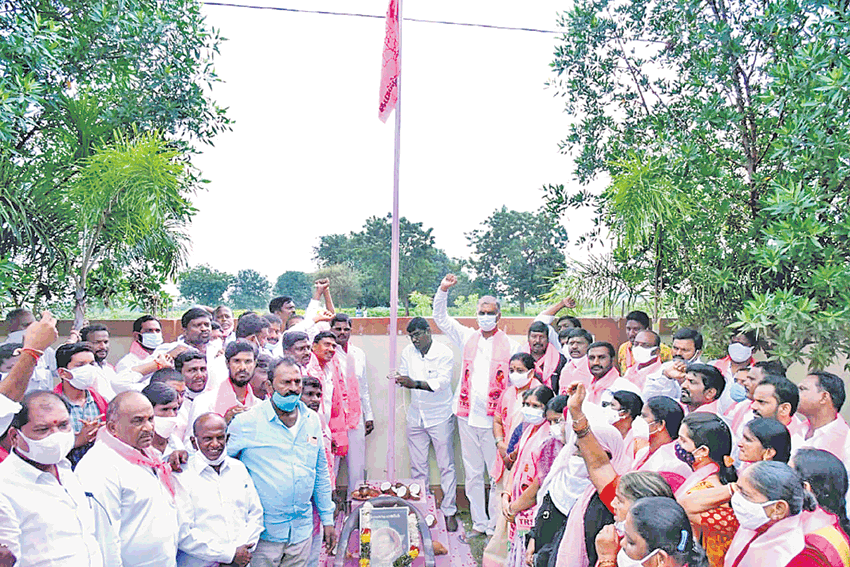 సిద్దిపేట జిల్లా కేంద్రంలోని తెలంగాణ భవన్లో ఆర్థిక మంత్రి హరీశ్రావు జెండా ఎగురవేశారు. ఈ సందర్భంగా ఆయన మాట్లాడుతూ.. టీఆర్ఎస్ పార్టీ జలదృశ్యంలో పుట్టి అంచెలంచెలుగా ఎదిగి ఢిల్లీ వరకు వెళ్లిందని చెప్పారు. పార్టీ ఆవిర్భావం నుంచి ప్రత్యేక తెలంగాణ సాధనే లక్ష్యంగా పని చేసిందని స్పష్టంచేశారు. స్వరాష్ట్రం వచ్చాక సీఎం కేసీఆర్ నాయకత్వంలో బంగారు తెలంగాణ దిశగా పరుగులు తీస్తున్నదని పేర్కొన్నారు. టీఆర్ఎస్ జెండా పుణ్యం, సీఎం కేసీఆర్ చలువతో రేవంత్రెడ్డికి పీసీసీ అధ్యక్ష పదవి, బండి సంజయ్కి బీజేపీ రాష్ట్ర అధ్యక్ష పదవి వచ్చిందన్నారు. పెద్దపల్లి జిల్లా ధర్మారంలో మంత్రి కొప్పుల ఈశ్వర్ టీఆర్ఎస్ జెండా ఎగురవేసి, సంస్థాగత నిర్మాణాన్ని ప్రారంభించారు. ఈ సందర్భంగా కొప్పుల మాట్లాడుతూ.. ఢిల్లీలో తెలంగాణ భవన్ నిర్మాణం రాష్ట్ర ప్రజల ఆత్మగౌరవానికి సూచిక అని పేర్కొన్నారు. నాడు తెలంగాణ ఎలా సాధిస్తారని ఎద్దేవాచేసిన నోర్లు మూతపడేలా సీఎం కేసీఆర్ పట్టుదలతో రాష్ర్టాన్ని సాధించి, అన్నిరంగాల్లో దేశానికి ఆదర్శంగా తీర్చిదిద్దుతున్నారని కొనియాడారు. నల్లగొండ పట్టణంలోని 48వ వార్డులో మండలి మాజీ చైర్మన్ గుత్తా సుఖేందర్రెడ్డి పార్టీ జెండాను ఆవిష్కరించారు.