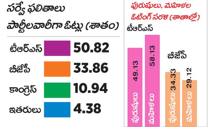 హైదరాబాద్, నవంబర్ 4 (నమస్తే తెలంగాణ): మునుగోడు ఉప ఎన్నికలో టీఆర్ఎస్దే విజయమని ఇప్పటికే పలు సర్వేలు సూచించగా, తాజాగా ఆరా సంస్థ నిర్వహించిన పోస్ట్పోల్ సర్వేలోనూ ఇదే ట్రెండ్ కొనసాగింది. పోలింగ్ అనంతరం నిర్వహించిన ఆరా సర్వే ప్రకారం.. టీఆర్ఎస్ 50.82% ఓట్లతో స్పష్టమైన ఆధిక్యత ప్రదర్శించనున్నది. బీజేపీకి 33.86%, కాంగ్రెస్కు 10.94%, ఇతరులకు 4.38% ఓట్లు దక్కుతాయని పేర్కొన్నది. నియోజకవర్గంలోని అన్ని వర్గాలు, వయసుల వారు టీఆర్ఎస్ వైపే మొగ్గు చూపినట్టు వెల్లడించింది. నియోజకవర్గం మొత్తం ప్రతి మండలం, ప్రతి బూత్లోనూ టీఆర్ఎస్కే అధిక ఓట్లు లభించాయని, స్పష్టమైన ఆధిక్యం కనబరించిందని పేర్కొన్నది.