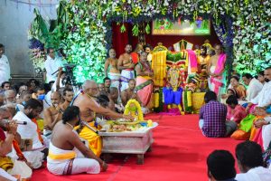 అనంతరం స్వామి అమ్మవార్లకు కల్యాణ తంతు నిర్వహించి అభిజిత్ లగ్న సుముహూర్తంలో కల్యాణం నిర్వహించారు. తిరు కల్యాణ మహోత్సవంలో సీఎంఓ ప్రత్యేక కార్యదర్శి భూపాల్ రెడ్డి, అసెంబ్లీ వ్యవహారాల కార్యదర్శి నరసింగరావు, కలెక్టర్ పమేలా సత్పతి, ఎమ్మెల్సీ వెంకటరామిరెడ్డి, ఈఎన్సీ రవీందర్ రావు, గణపతి రెడ్డి, అదనపు కలెక్టర్ దీపక్ తివారీ, ఆర్డీవో భూపాల్ రెడ్డి, భక్తులు అధిక సంఖ్యలో పాల్గొన్నారు.