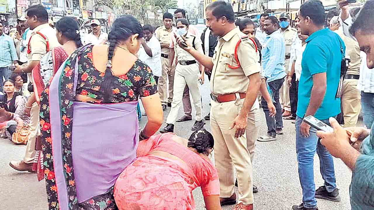 డ్రైవర్ శంకర్గౌడ్ ఆత్మహత్యాయత్నంతో నర్సంపేట ఆర్టీసీ డిపో వద్ద తీవ్ర ఉద్రిక్తత నెలకొన్నది. ఘటనతో ఆగ్రహించిన కార్మికులు ప్రభుత్వం, యాజమాన్యానికి వ్యతిరేకంగా పెద్ద ఎత్తున నినాదాలు చేశారు. ‘సీఎం డౌన్.. డౌన్’, ‘కాంగ్రెస్ ప్రభుత్వ మొండివైఖరి నశించాలి’, ‘ఇదేమి రాజ్యం.. ఇదేమి రాజ్యం’ అంటూ పెద్దపెట్టున నినదించారు. పరిస్థితి అదుపు తప్పడంతో పోలీసులు వచ్చి నిరసనకారులను నిలువరించే ప్రయత్నం చేశారు.