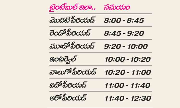 హైదరాబాద్, మార్చి 14 (నమస్తే తెలంగాణ): ఎండల తీవ్రత నేపథ్యంలో మంగళవారం నుంచి ఒంటిపూట బడులు మొదలుకానున్నాయి. రాష్ట్రంలోని పాఠశాలలను ఒక్కపూట మాత్రమే నిర్వహించాలని పాఠశాల విద్యాశాఖ డైరెక్టర్ శ్రీదేవసేన సోమవారం ఆదేశాలు జారీచేశారు. ప్రభుత్వ, ఎయిడెడ్, ప్రైవేట్ స్కూళ్లు అన్ని ఈ ఆదేశాలను చివరి పనిదినం వరకు పాటించాలని సూచించారు. డీఈవోలు, ఆర్జేడీలు ఇందుకు చర్యలు తీసుకోవాలని ఆదేశించారు. బడులు ఉదయం ఎనిమిదింటికి ప్రారంభమై, మధ్యాహ్నం 12:30 గంటల వరకు కొనసాగుతాయి. విద్యార్థులకు 12:30 గంటల సమయంలో మధ్యాహ్న భోజనం పెట్టాలని ఆదేశాలిచ్చారు. టెన్త్ వార్షిక పరీక్షలు సమీపిస్తున్నందున ఎస్సెస్సీ విద్యార్థులందరికీ ప్రత్యేక తరగతులు నిర్వహించాలని డైరెక్టర్ శ్రీదేవసేన ఆదేశాల్లో పేర్కొన్నారు. పరీక్షలు మొదలయ్యే వరకు వీటిని జరుపాలని సూచించారు.