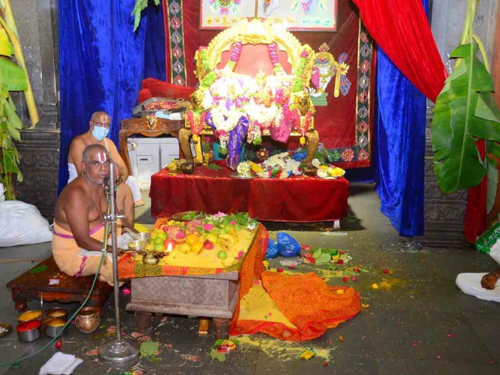 కొండపైన ఉన్న పర్వతవర్ధని రామలింగేశ్వరుడికి అర్చకులు ప్రత్యేక పూజలు చేశారు. పార్వతీదేవిని కొలుస్తూ కుంకు మార్చన జరిపారు. కొండ కింద భక్తులు పుణ్యస్నానం ఆచరించి సంకల్పంలో పాల్గొన్నారు. రాత్రి బాలాలయంలోని ప్రతిష్ఠమూర్తులకు ఆరాధన, సహస్రనామార్చన జరిగాయి.