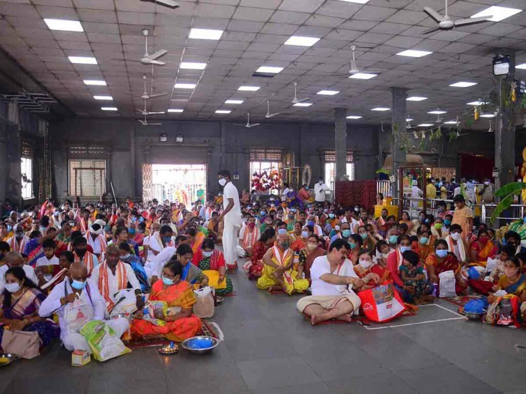 శ్రావణమాసం సందర్భంగా యాదాద్రి ఆలయంలో అత్యంత ప్రతిష్టాత్మకంగా జరుపుకునే శ్రీసత్యనారాయణ స్వామివారి వ్రత పూజల్లో భక్తులు పాల్గొన్నారు. సామూహిక వ్రతాలు పెద్ద ఎత్తున జరిగాయి. సత్యనారాయణుడిని ఆరాధిస్తూ భక్తి శ్రద్ధలతో పూజలు చేశారు.