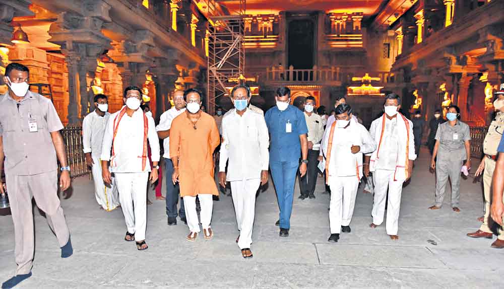 రింగ్రోడ్డు పరిధిలో ఉన్న కొందరు ప్రైవేటు వ్యక్తులు తమకు న్యాయం చేయాలని సీఎం కేసీఆర్కు వినతిపత్రం అందించగా, వారిని ఈవో కార్యాలయానికి పిలిపించి మాట్లాడారు. భూమికి భూమి ఇవ్వడంతోపాటు నిర్మాణాల విలువను చెల్లిస్తామని హామీఇచ్చారు. కడుపునిండా పరిహారం ఇస్తామని, ఆందోళన చెందాల్సిన అవసరం లేదని భరోసాఇచ్చారు. టెంపుల్సిటీలో షాపులు కేటాయించడంలో వీరికి ప్రాధాన్యతనిచ్చే విషయాన్ని పరిశీలించాలని అధికారులకు సూచించారు. రింగురోడ్డులోపల 5 వేల వాహనాల సామర్థ్యంతో పారింగ్ ఏర్పాటుచేయాలని సూచించారు. సీఎం కేసీఆర్ వెంట మంత్రులు జగదీశ్రెడ్డి, వేముల ప్రశాంత్రెడ్డి, ఎంపీ సంతోష్కుమార్, ఎమ్మెల్సీ శేరి సుభాష్రెడ్డి, ఎమ్మెల్యే గొంగిడి సునీతామహేందర్ రెడ్డి, జడ్పీ చైర్మన్ ఎలిమినేటి సందీప్రెడ్డి, ప్రభుత్వ ప్రధాన కార్యదర్శి సోమేశ్కుమార్, సీఎం కార్యదర్శులు స్మితా సభర్వాల్, భూపాల్రెడ్డి, కలెక్టర్ పమేలాసత్పతి, వైటీడీఏ స్పెషలాఫీసర్ కిషన్రావు, ఈవో గీత, ఆరిటెక్ట్ ఆనంద్సాయి, ఆర్అండ్బీ ఈఎన్సీలు గణపతిరెడ్డి, రవీందర్రావు, సీపీ మహేశ్భగవత్, వాస్తు సలహాదారు సుద్దాల సుధాకర్ తేజ తదితరులు ఉన్నారు.