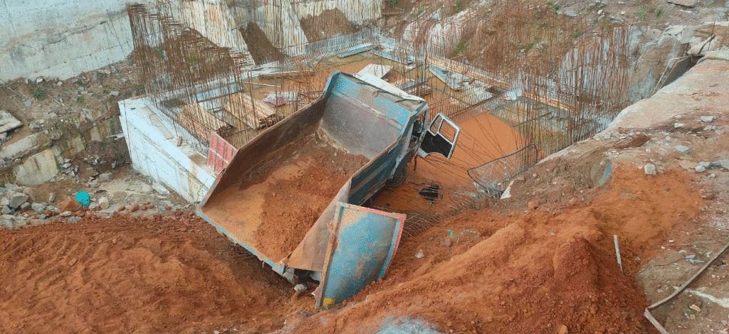 యాదాద్రి: యాదాద్రి కొండపైన పుష్కరిణి సమీపంలో మట్టి లోడుతో వెళ్తున్న టిప్పర్ లారీ ప్రమాదవశాత్తు బోల్తా కొట్టింది. సుమారు 20 మీటర్ల లోతులో టిప్పర్ పడింది.