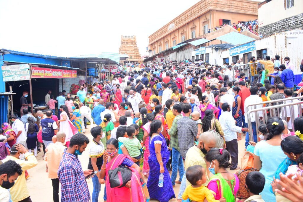 స్వామి వారి ప్రాంగణం పూర్తిగా భక్తులతో నిడిపోయింది. వాహనాల రాకతో కొండకింద ట్రాఫిక్ ఇబ్బందులు ఏర్పడ్డాయి. భక్తుల రద్ధీ దృష్ట్యా కొండపైకి వాహనాలను అనుమతించలేదు. పాతగుట్ట లక్ష్మీనరసింహస్వామి వారి ఆలయంలో సైతం భక్తుల రద్ధీ భారీగా కొనసాగింది. భక్తులు అధిక సంఖ్యలో పూర్వగిరిశుడిని దర్శించుకుని ప్రత్యేక పూజలు చేపట్టారు.