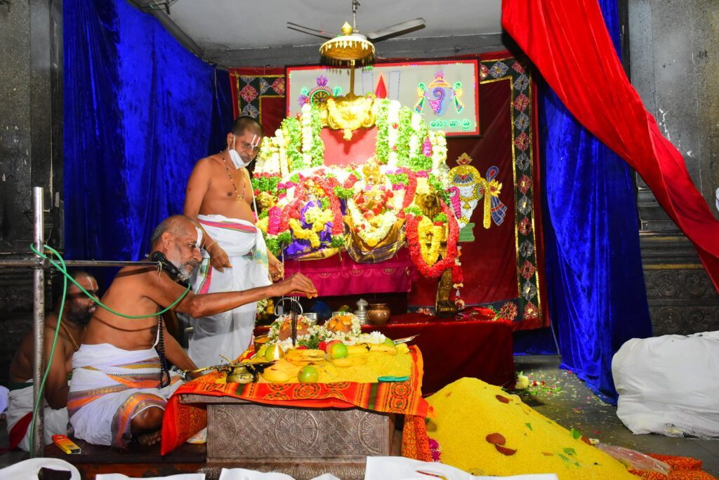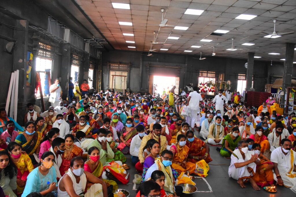 దేవేరులను ముస్తాబు చేసి గజ వాహనం పై ముఖ మండపంలోనే ఊరేగించారు. లక్ష్మీసమేతుడైన నారసింహుడిని ముస్తాబు చేసి బాలాలయ ముఖమండపంలో భక్తులకు అభిముఖంగా అధిష్టించి సుమారు గంటన్నరకుపైగా కల్యాణతం తు జరిపారు. ఉదయం నుంచి రాత్రి వరకు నిరాటంకంగా దర్శనాలు కొనసాగాయి. సాయంత్రం అలంకార జోడు సేవలు నిర్వహించారు. మండపంలో అష్టోత్తర పూజలు జరిపారు. పర్వతవర్ధనీ సమేత రామ లింగేశ్వరుడికి రుద్రాభిషేకం జరిపా రు. నవగ్రహాలకు తైలాభిషేకం జరిపారు. అమ్మవారికి కుంకుమార్చనలు నిర్వహించారు