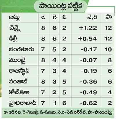 చెన్నై: గైక్వాడ్ (నాటౌట్) 88, డుప్లెసిస్ (సి) మిల్నె (బి) బౌల్ట్ 0, అలీ (సి) తివారి (బి) మిల్నె 0, రాయుడు (రిటైర్డ్ హర్ట్) 0, రైనా (సి) రాహుల్ (బి) బౌల్ట్ 4, ధోనీ (సి) బౌల్ట్ (బి) మిల్నె 3, జడేజా (సి) పొలార్డ్ (బి) బుమ్రా 26, బ్రేవో (సి) కృనాల్ (బి) బుమ్రా 23, శార్దూల్ (నాటౌట్) 1, ఎక్స్ట్రాలు: 11, మొత్తం: 156/6. వికెట్ల పతనం: 1-1, 2-2, 2-3*, 3-7, 4-24, 5-105, 6-144, బౌలింగ్: బౌల్ట్ 4-1-35-2, మిల్నె 4-0-21-2, బుమ్రా 4-0-33-2, పొలార్డ్ 2-0-15-0, రాహుల్ 4-0-22-0, కృనాల్ 2-0-27-0.