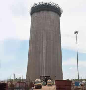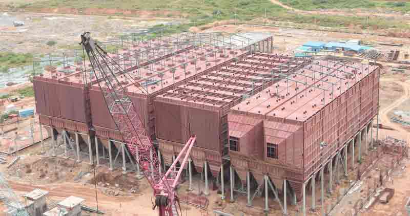 మొత్తం ఐదు యూనిట్లకు ఐదు కూలింగ్ టవర్లను నిర్మిస్తున్నారు. ఇవి కూడా భారీగానే ఉంటాయి. సుమారు 200 మీటర్ల ఎత్తుండే ఈ టవర్లు భూ ఉపరితలంపై 145 మీటర్లు, 200 మీటర్ల ఎత్తులో 88 మీటర్ల వ్యాసంతో ఉంటాయి. కూలింగ్ టవర్లకు గంటకు 90 వేల క్యూబిక్ మీటర్ల నీటిని చల్లబరిచే సామర్థ్యం ఉన్నది. వీటి నిర్మాణం 40 శాతం పూర్తయ్యింది.