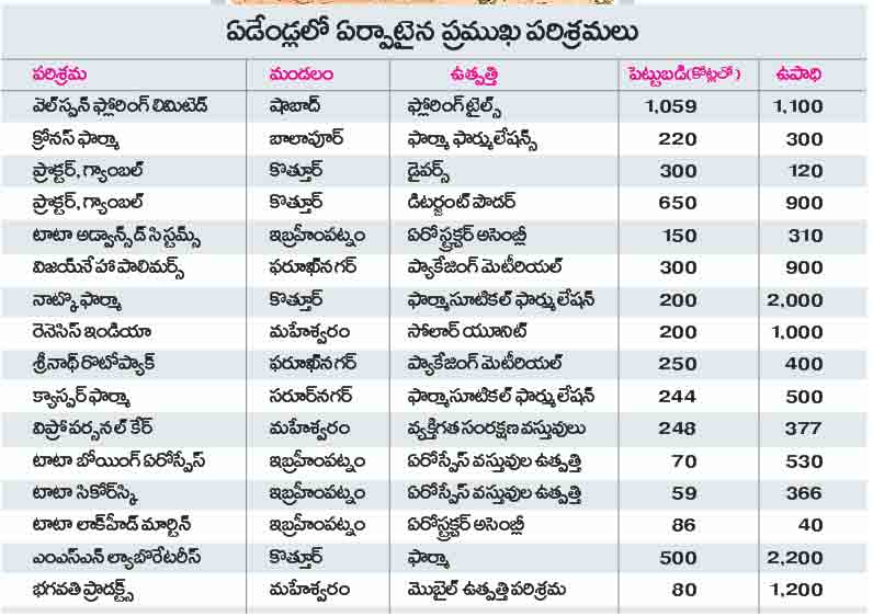 ప్రభుత్వ ఇన్వెస్టర్ ఫ్రెండ్లీ పాలసీలతో రాష్ర్టానికి పెట్టుబడులు పోటెత్తుతున్నాయి. అందుకు నిదర్శనమే రంగారెడ్డి జిల్లా పారిశ్రామిక ప్రగతి.
