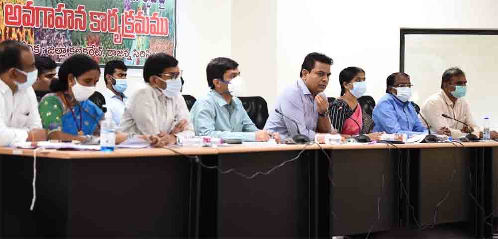 రాష్ట్రంలో ఎక్కువమంది రైతులు దొడ్డు బియ్యం పండిస్తున్నారని, దొడ్డు బియ్యాన్ని కొనబోమని కేంద్రప్రభుత్వం తేల్చి చెప్పినందున వరికి బదులుగా ప్రత్యామ్నాయ పంటలు సాగుచేయాలని మంత్రి కేటీఆర్ సూచించారు. కొత్త సాంకేతికను అందిపుచ్చుకొని కొత్త పంటల సాగువైపు దృష్టి కేంద్రీకరించాలని వ్యవసాయ విస్తరణ అధికారులను ఆదేశించారు. పంటల సాగులో అధికారులు, నాయకులకంటే రైతులకే ఎక్కువ అనుభవం ఉంటుందని, ఏ పంట వేయాలో వారిని అడిగి తెలుసుకోవాలని కోరారు. రైతులను అడిగి తెలుసుకోవడంలో నామోషీగా ఫీలవకూడదన్నారు. రైతులకు అవగాహన సమావేశాలు ఏర్పాటుచేసి 15 రోజుల్లో పంట మార్పిడిపై నివేదికలు ఇవ్వాలని అధికారులను ఆదేశించారు. వేరుశనగ, పొద్దుతిరుగుడు, కందులు, కూరగాయలు తదితర పంటల సాగుపై దృషి సారించాలని సూచించారు. సమావేశంలో జిల్లా కలెక్టర్ అనురాగ్ జయంతి, ఆర్డీవో శ్రీనివాసరావు, మున్సిపల్ కమిషనర్ సమ్మయ్య, నాఫ్స్కాబ్ చైర్మన్ కొండూరి రవీందర్రావు, జడ్పీ చైర్పర్సన్ న్యాలకొండ అరుణ, రైతుబంధు సమితి జిల్లాధ్యక్షుడు గడ్డం నర్సయ్య, మున్సిపల్ చైర్పర్సన్ జిందం కళ, వ్యవసాయశాఖ అధికారి రణధీర్రెడ్డి, ఆర్బీఎస్ మండల, గ్రామశాఖల ప్రతినిధులు, వ్యవసాయ విస్తరణ అధికారులు పాల్గొన్నారు.