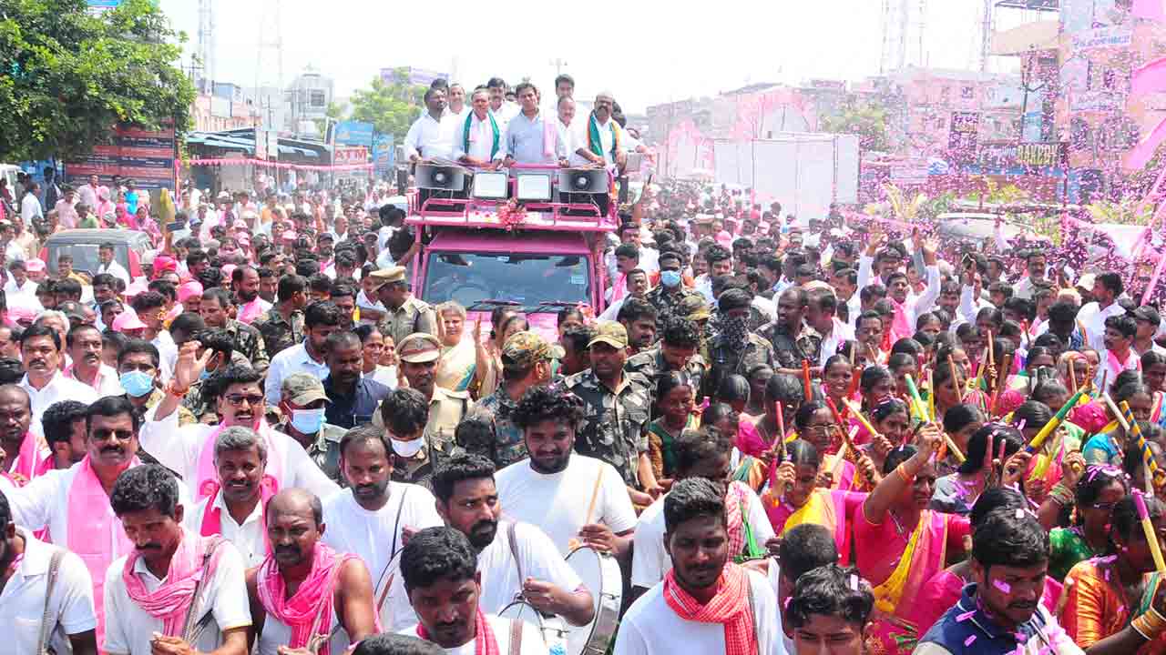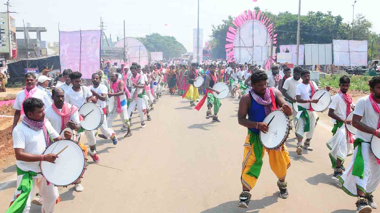 జిల్లా నలుమూల నుంచి జనం భారీ సంఖ్యలో తరలిరావడంతో అంబేద్కర్ సెంటర్ కిక్కిరిసిపోయింది. 8 కిలోమీటర్ల పొడవునా గులాబీ రంగుతో భారీ కటౌట్లు, కేటీఆర్ స్వాగత ఫ్లెక్సీలు ఓవైపు, గులాబీ జెండాలతో తరలివచ్చే కార్యకర్తలతో భూపాలపల్లి పట్టణమంతా గులాబీ వర్ణం పులుకుమున్నట్లయింది. మహిళలు కోలాటం, డప్పు వాయిద్యాలతో ర్యాలీగా చేరుకోగా, వివిధ సంక్షేమ పథకాలతో లబ్ధిదారులు తమ కులవృత్తులతో పరికరాలతో తరలివచ్చి కేటీఆర్కు ఘన స్వాగతం పలికారు. అలాగే పరకాల నియోజకవర్గ కేంద్రంలో ఎమ్మెల్యే చల్లా ధర్మారెడ్డి ఆధ్వర్యంలో ప్రగతి నివేదన పేరిట జరిగిన సభకు బీఆర్ఎస్ శ్రేణులు, జనం పోటెత్తారు. దీంతో సభా ప్రాంగణమంతా గులాబీమయమైంది. సభ సక్సెస్తో పరకాలలో ధర్మారెడ్డి గెలుపు ఖాయమైందని పలువురు హర్షం వ్యక్తం చేశారు. సభలో ప్రసంగిస్తున్న సమయంలోనే ఎన్నికల కోడ్ వెలువడడం.. అదే సమయంలో అక్కడి నాయకులు అందించిన శంఖంతో మంత్రి కేటీఆర్ ‘ఎన్నికల శంఖారావం’ పూరించడం ప్రత్యేక ఆకర్షణగా నిలువడమే గాక బీఆర్ఎస్ శ్రేణుల్లో మరింత ఉత్సాహం నింపింది.