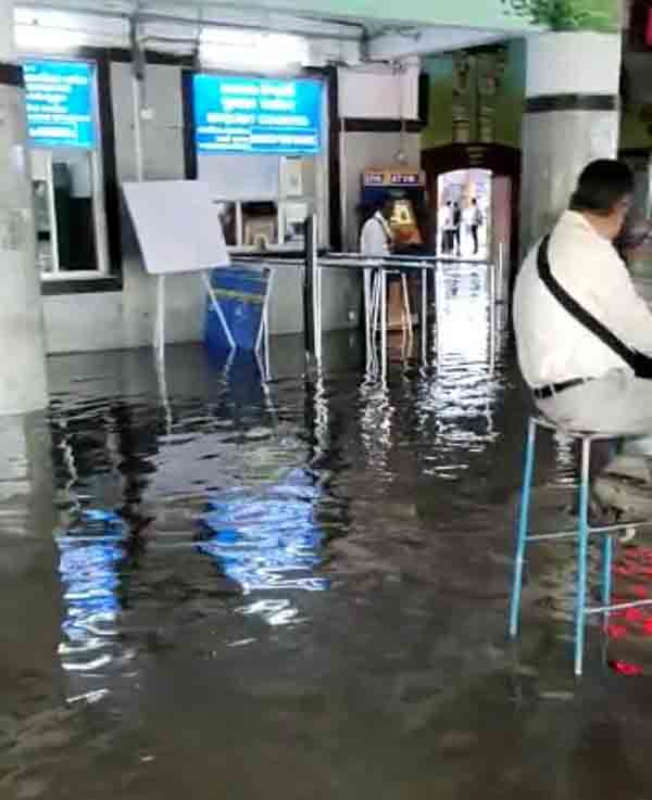 కాజీపేట రైల్వే జంక్షన్ ప్లాట్ఫాంపైకి వచ్చిన నీరు