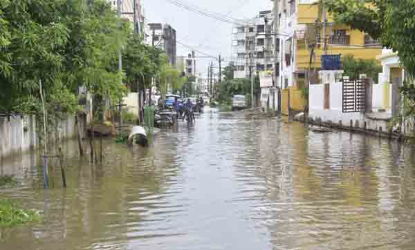 చైతన్యపురి కాలనీలో రోడ్డుపై వరద