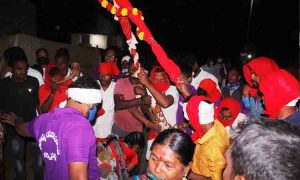 కొత్తగూడ/ గంగారం, ఫిబ్రవరి 15 : మేడారం మహాజాతర గడియలు సమీపించాయి. అపురూప ఘట్టం ఆవిష్కృతానికి మరికొన్ని గంటలే మిగిలిఉన్నాయి. వనంబాట పట్టిన భక్తజనం తల్లుల రాక కోసం నిలువెల్లా కన్నులై ఎదురు చూస్తున్నది. ఈ క్రమంలో సమ్మక్క భర్త పగిడిద్దరాజు మేడారం జాతరలో కొలువుదీరడానికి గిరిజన సంస్కృతీ సంప్రదాయాల నడుమ మంగళవారం బయలుదేరారు. మహబూబాబాద్ జిల్లా గంగారం మండలం పూనుగొండ్ల నుంచి వడ్డెలు, పూజారులు పగిడిద్దరాజు పడిగెతో అటవీమార్గం గుండా మేడారం బాటపట్టారు. దీంతో పూనుగొండ్ల గ్రామం పులుకరించింది. ఆధ్యాత్మిక శోభ సంతరించుకోంది. పూనుగొండ్ల గ్రామంలో పెనక వంశీయులు పగిడిద్దరాజును కొలుస్తూ రెండు సంవత్సరాలకోసారి జరిగే మేడారం జాతరకు పగిడిద్దరాజును వరుడుగా తయారు చేసి తరలించడం ఆనవాయితీగా వస్తున్నది. అందులో భాగంగానే తలపతులుగా భావించే పెనక వెంకటేశ్వర్లు ఇంట్లో ఉన్న పసుపు, కుంకుమతో పూజలు చేసి, అక్కడి నుంచి డప్పు వాయిద్యాల నడుమ నేరుగా పగిడిద్దరాజు దేవాలయానికి వెళ్లారు. పసుపు, కుంకుమను ఎరుపురంగులో ఉన్న బట్టతో కప్పి దేవాలయంలో పెట్టి మొక్కులు సమర్పించారు.