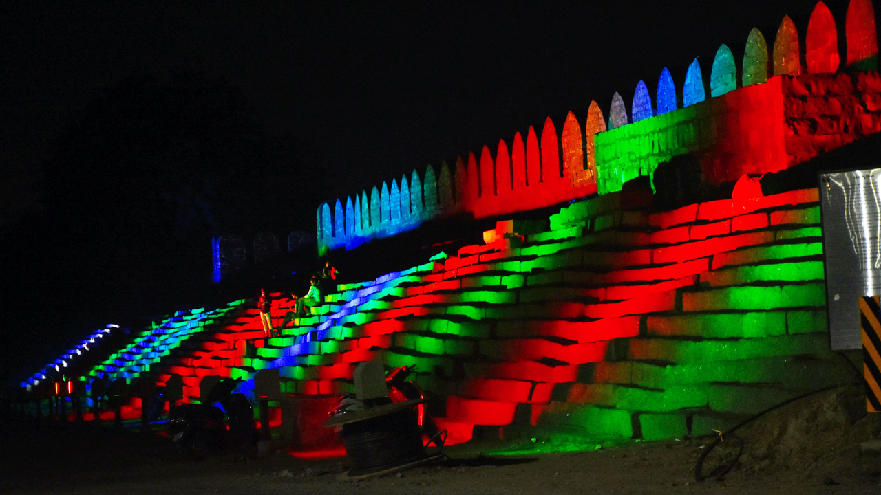 చారిత్రక నేపథ్యం కలిగిన రాతికోట, ఖుష్మహల్, ఏకశిలగుట్ట ఫసాడ్ లైట్లతో కాంతులీనుతోంది. రూ.6 కోట్ల నిధులతో మూడేళ్ల క్రితం మొదలుపెట్టిన ఫసాడ్ లైట్ల ట్రయల్స్ను కూడా నిర్వహించారు. అయితే వివిధ కారణాలతో పనులు మధ్యలో నిలిచిపోయాయి. ఇటీవల వరంగల్ తూర్పు ఎమ్మెల్యే నన్నపునేని నరేందర్ వివిధ విభాగాల అధికారులతో రాతికోట వద్ద ఫసాడ్ లైట్ల పనులను పరిశీలించారు. పనులు త్వరగా పూర్తి చేయాలని ఆదేశించారు. దీంతో అధికారులు ముందుగా రాతికోట ఉత్తర ద్వారం, ఖుష్మహల్కు ఈ నెల 2వరకు పనులను పూర్తి చేసి లైట్లను వెలిగించారు.