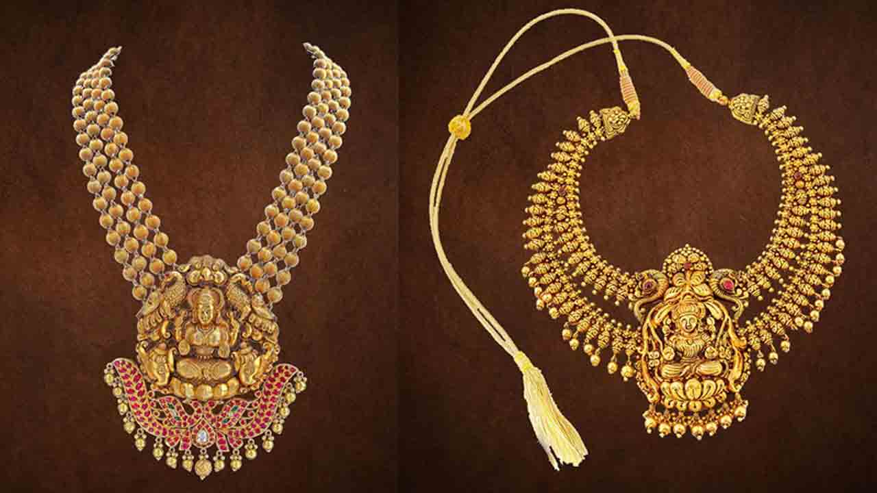 ధనానికి అధిదేవత లక్ష్మీదేవి. సిరిసంపదలకు ప్రతీకగా నిలిచే అమ్మవారిని ప్రసన్నం చేసుకునేందుకు పూజలు చేస్తారు, నోములు నోస్తారు. శ్రీదేవి ప్రతిరూపాన్ని అంతటా ప్రతిష్ఠించి కొలుస్తారు. లక్ష్మీదేవి రూపం ఒదిగిన ఆభరణాలూ ధరిస్తారు. శ్రావణ మాసం విశేష పూజలు అందుకుని, వరాలు కురిపించే లక్ష్మీదేవి రూపంలో తళుకులీనుతున్నాయి..